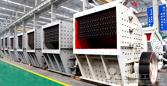 黎明重工研發(fā)生產(chǎn)的反擊式破碎機(jī)具有處理能力強(qiáng),破碎效率高,穩(wěn)定可靠,故障率低,操作維護(hù)便捷,運(yùn)行成本低等優(yōu)點(diǎn)。它選用了大轉(zhuǎn)動(dòng)慣量的高精度重型轉(zhuǎn)子設(shè)計(jì),配合數(shù)控機(jī)床整體制造工藝,轉(zhuǎn)子運(yùn)行轉(zhuǎn)速大幅提升,處理能力顯著增加;優(yōu)化設(shè)計(jì)的漸開線破碎腔型,破碎效率高,成品粒型好。